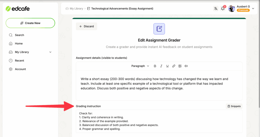 To make it more you, a dedicated Grading Instructions field is available for you to get your tone, structure, and focus specified right away, simply supporting what classroom-ready feedback there already is.