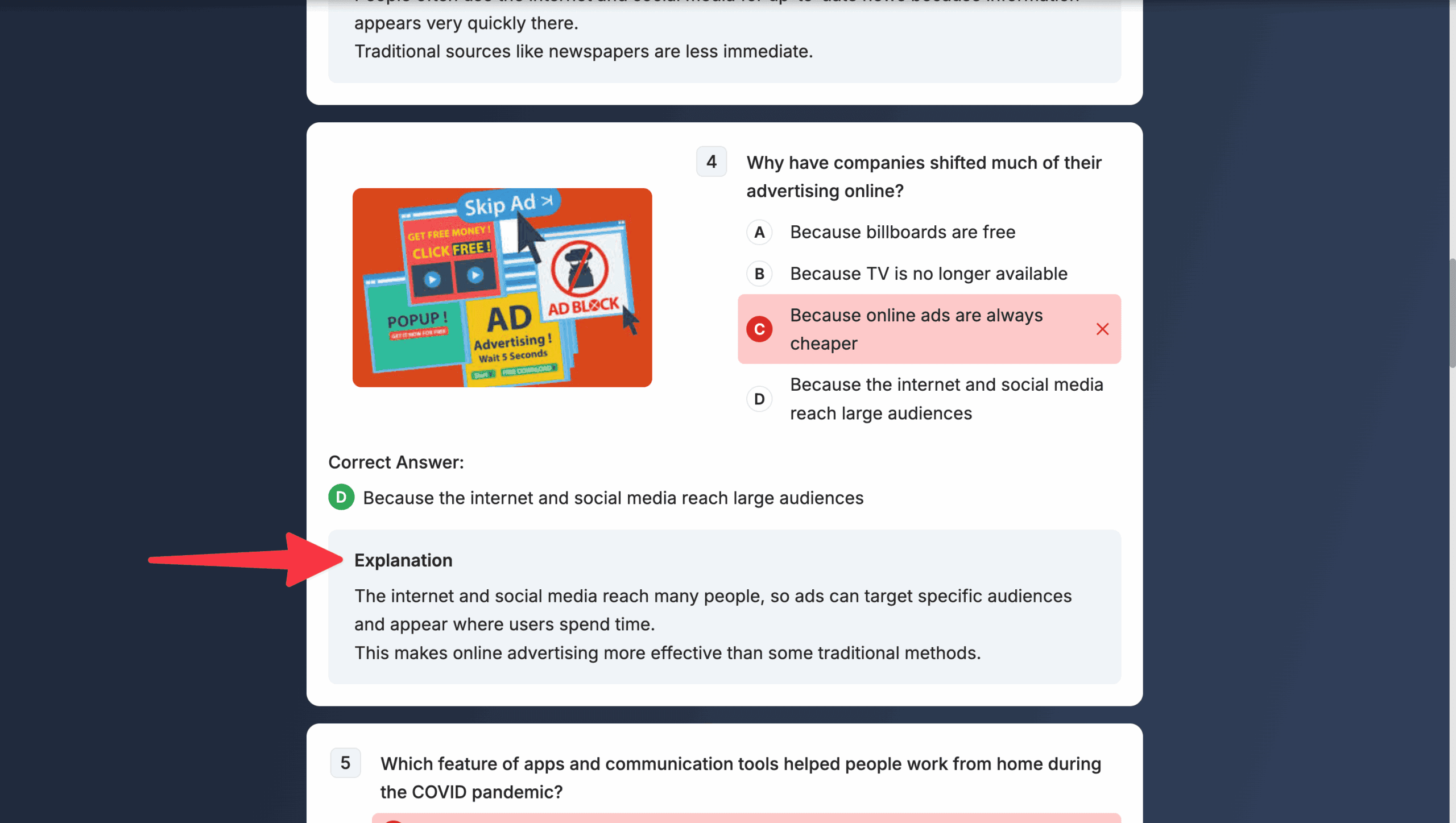 Before assigning the quiz to students, you can edit these explanations to ensure that once students finish their quizzes, they get the explanations you want them to see.