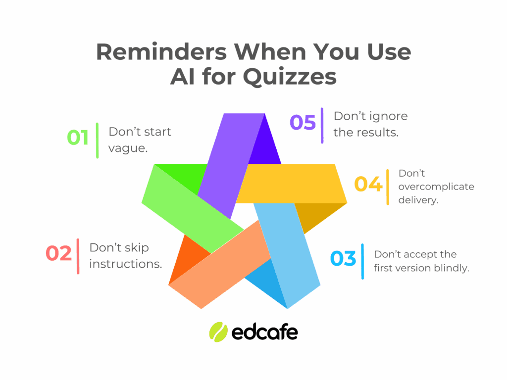 Once you’ve decided to use AI for quizzes, the goal is simple: don’t let it create more work for you.